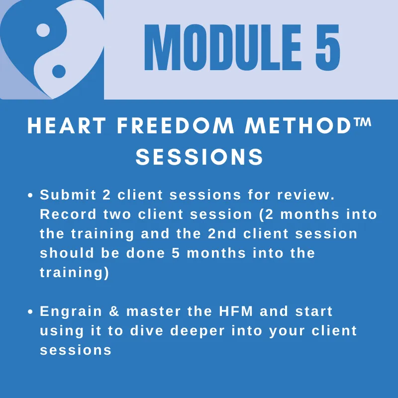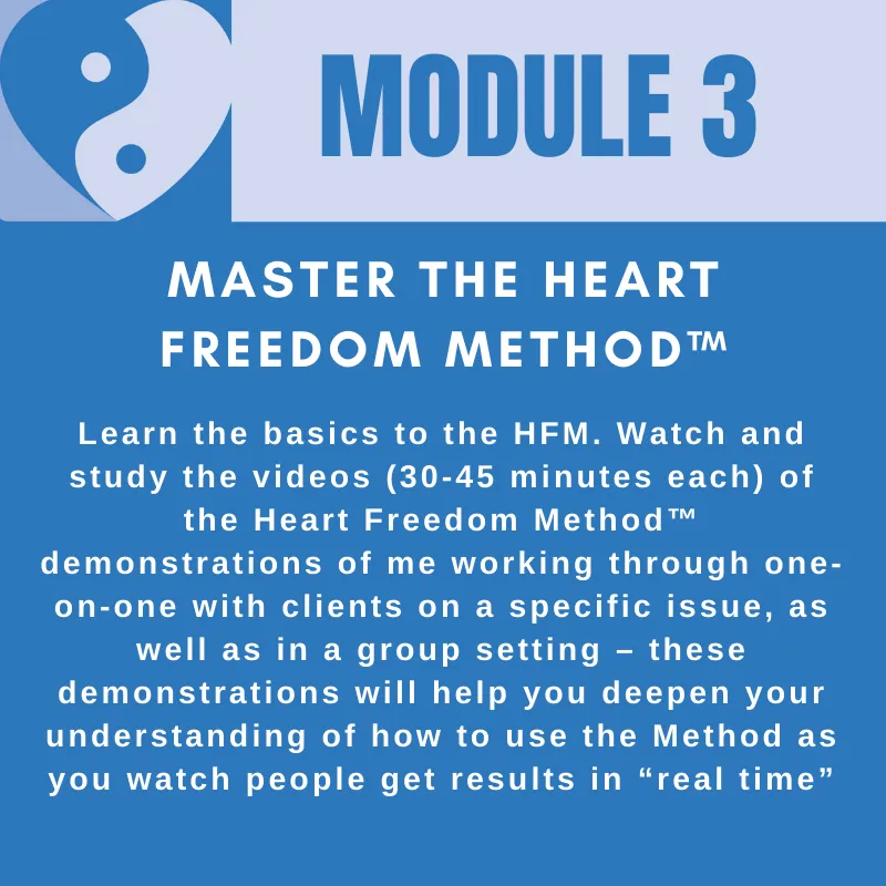 The Heart Freedom Method™ Certification program is all about enabling you to master this powerful method and utilize it in your practice. Unlike other certification programs that don’t offer any one on one support, The HFM™ Certification program works with you one on one and with other coaches in the program to ensure that you have full mastery of the method and its applications.